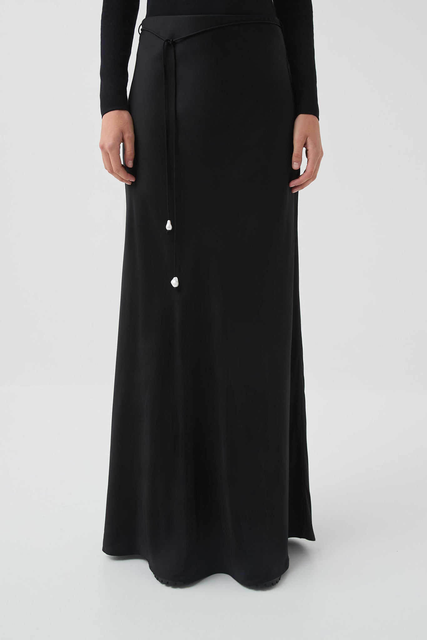 - Rouleau tie belt with pearl bead tips