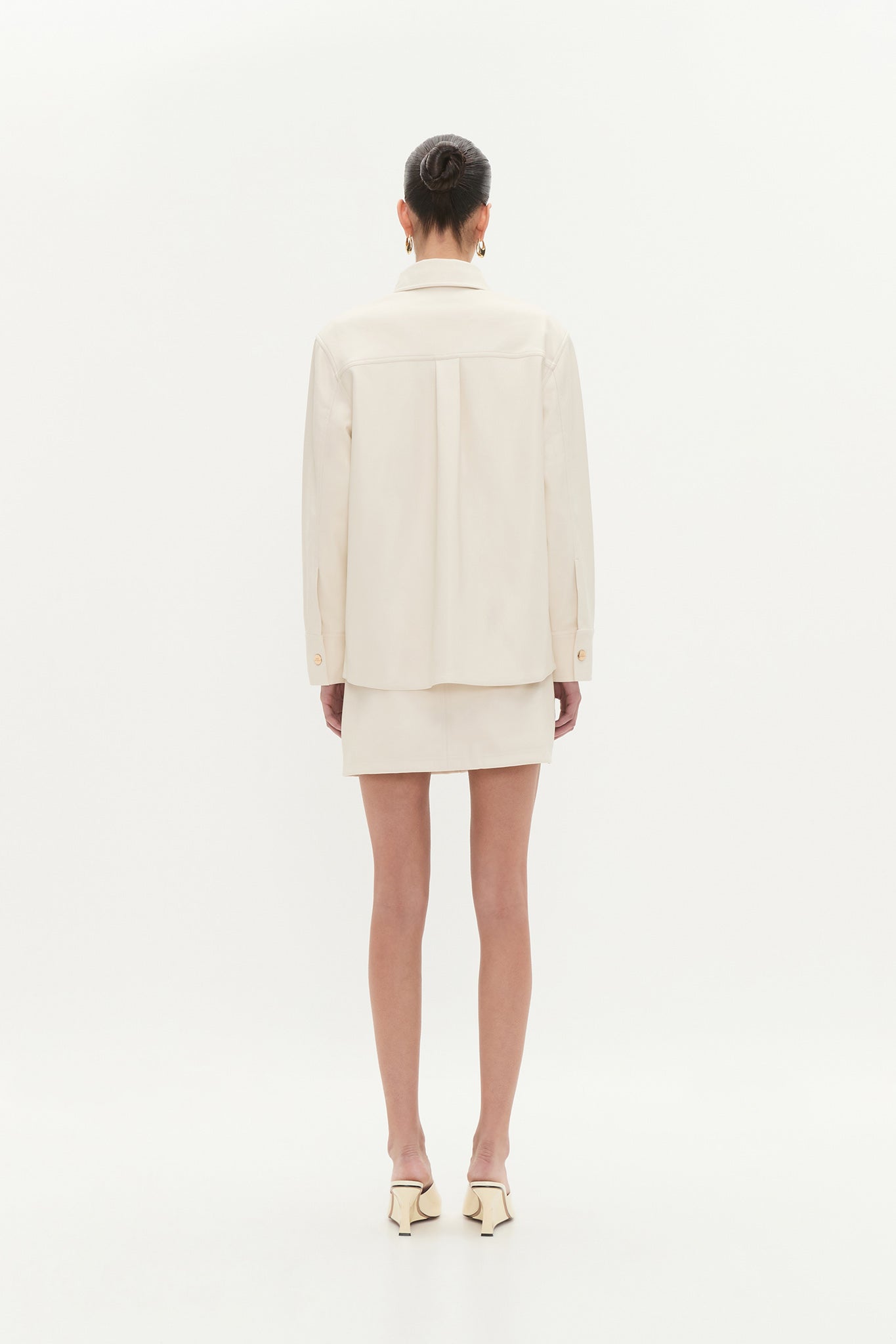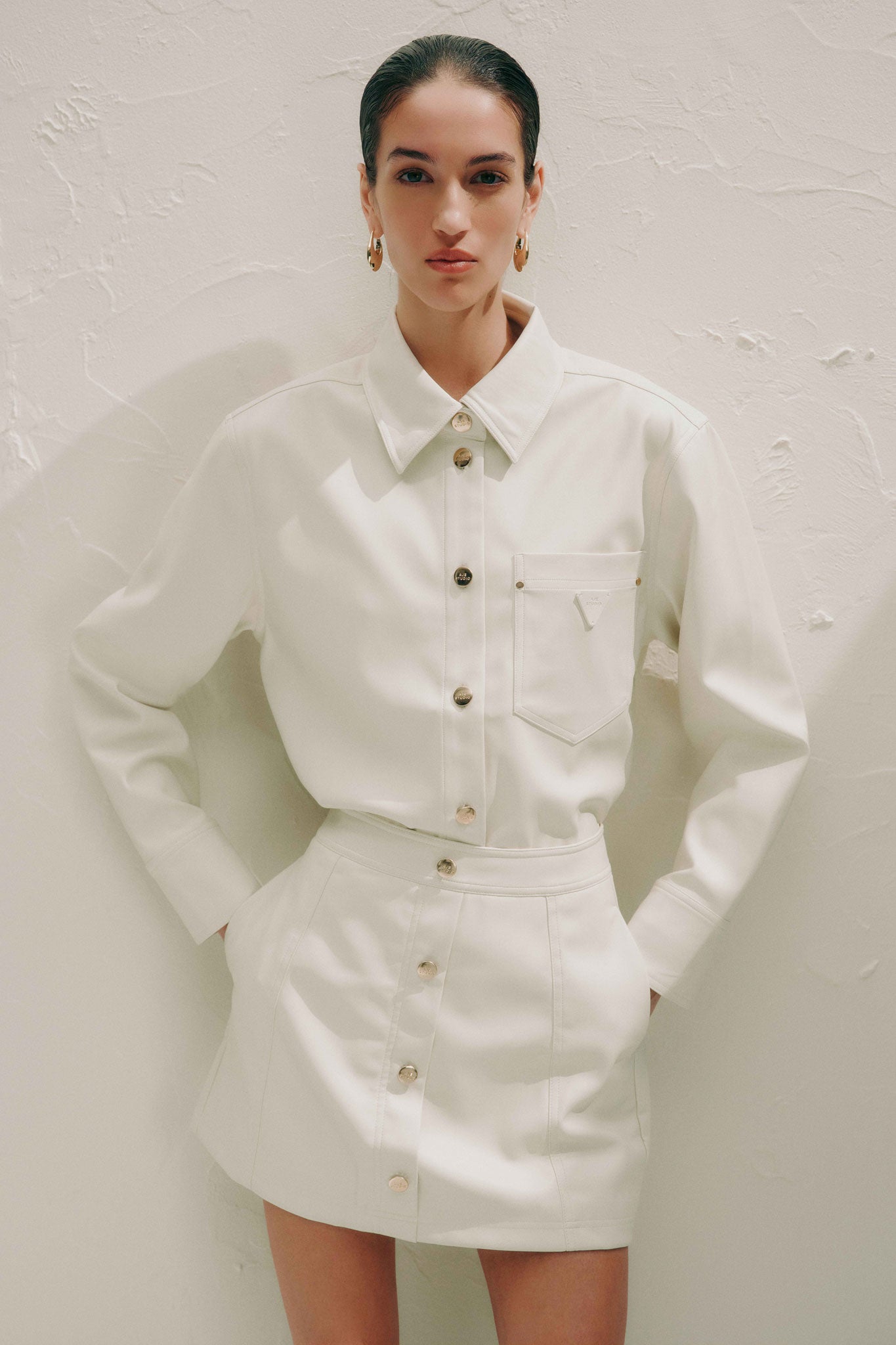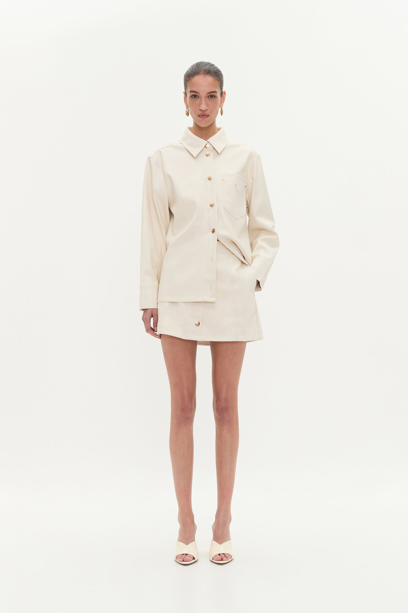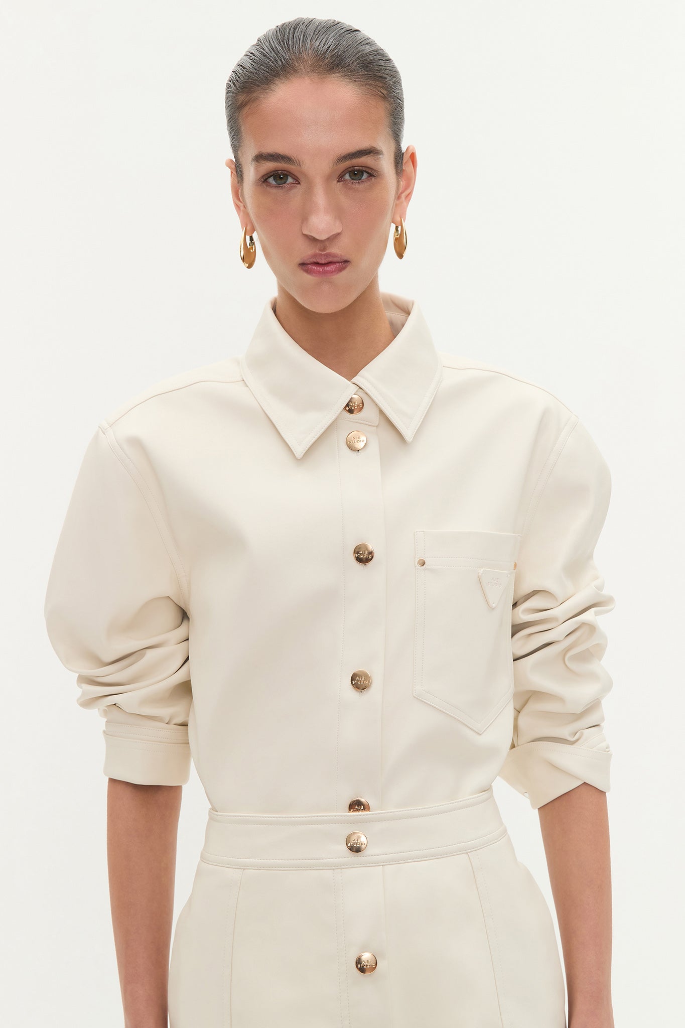 - Front pocket with gold rivets and embossed vegan leather logo patch