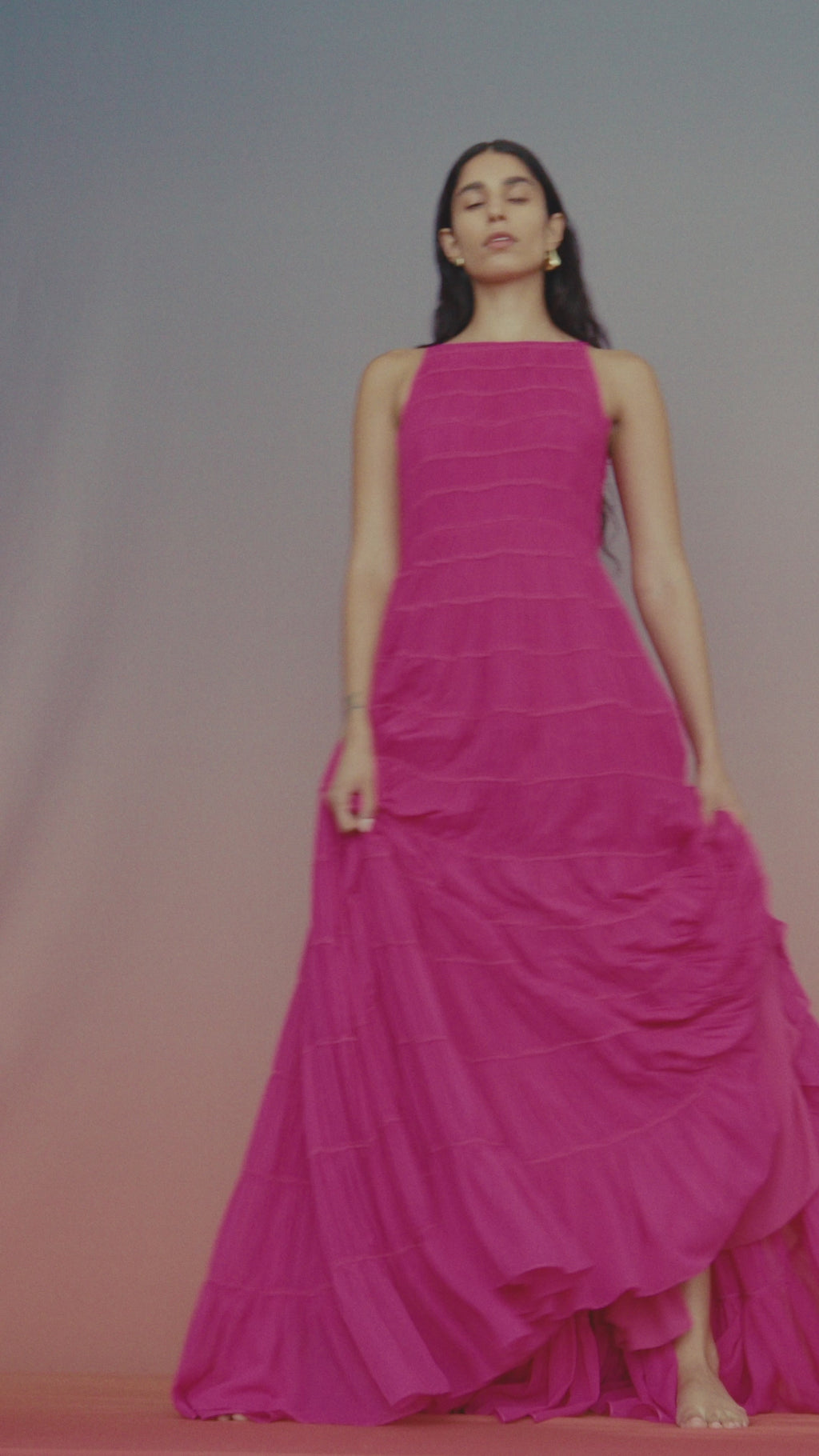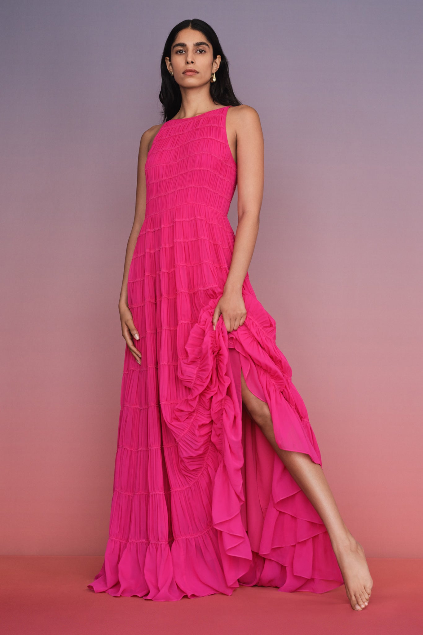 • Thoughtfully altered from the runway, the Rosewood Ruched Gown has been reimagined for purchase with a raised hemline.